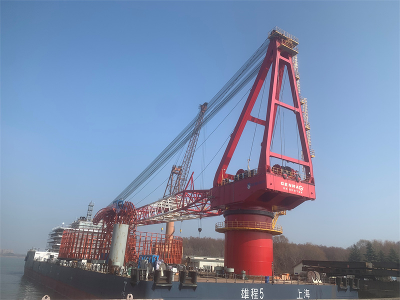 “雄程5”号铺缆船,总长125米,型宽37米,型深8.2米,设计吃水5.2米,入级CCS中国船级社。是集桩基和风机运输、桩基沉桩、风机安装以及海底电缆铺设于一体的、多用途大型海洋工程装备,功能齐全,可一次性铺设1万吨级海底电缆。同时,该船具有800吨全回转起重能力,是目前国内海底电缆铺设装备之一,船上拥有众多的大型工程装备,系统复杂、技术难度较高,是一艘典型的高技术、高附加值的海洋工程船舶,预计每年可完成运输、打桩、安装风机50套,铺设海底电缆50套。该船的投产运营,将有力推动我国海上风电和海洋工程产业高质量发展。