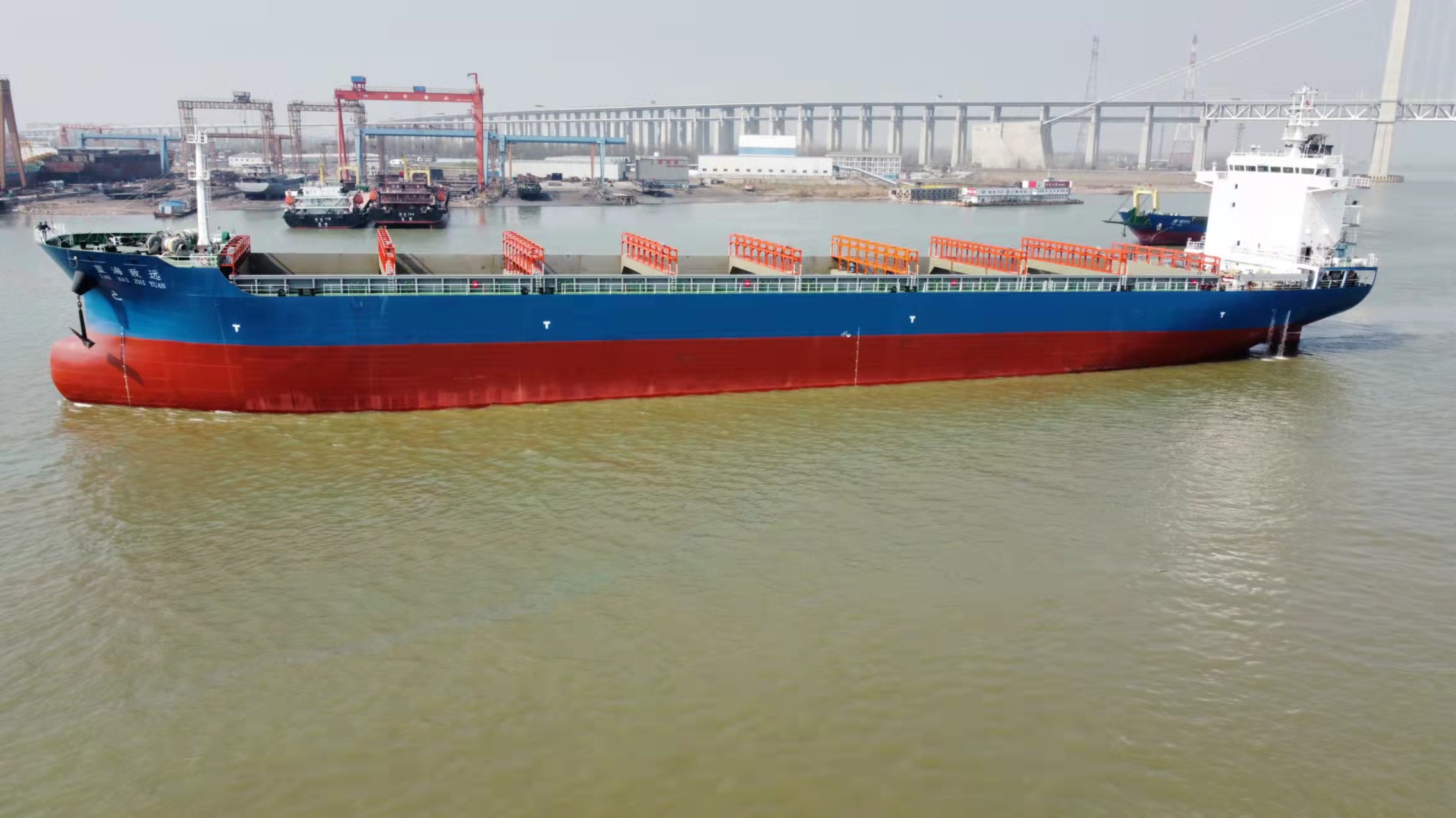 蓝海致远轮,船舶类型:集装箱,总长151.80米,船宽23.90米,型深13.30米,前吃水4.5米,后吃水5.0米,总吨13975,净吨7826,主机功率3906.00KW